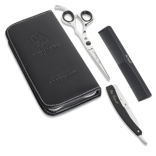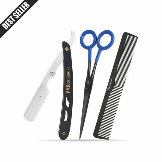 Premium 3-in-1 Barber Grooming Kit – Professional Razor, Scissors & Comb Set