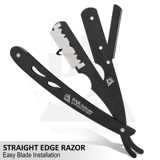 Full Black Stainless Steel Professional Barber Straight Edge Razor